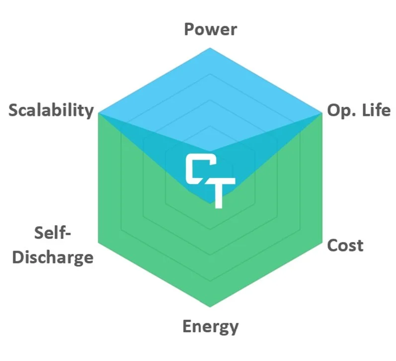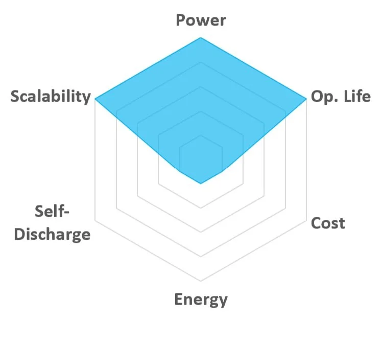 Here’s the truth: batteries alone can’t power our future. What they can do and what they should do are not the same. Although they can store energy for long durations (high energy density) and have a good self-discharge, they have a hard time delivering a lot of energy very quickly (low power density) and have a relatively short operating life. Charging or discharging at high rates is damaging to batteries, resulting in lost performance and frequent replacements. The current way around this is to oversize the battery so the system can handle these high charge/discharge rates, but this is expensive and unsustainable for the cleantech industry.