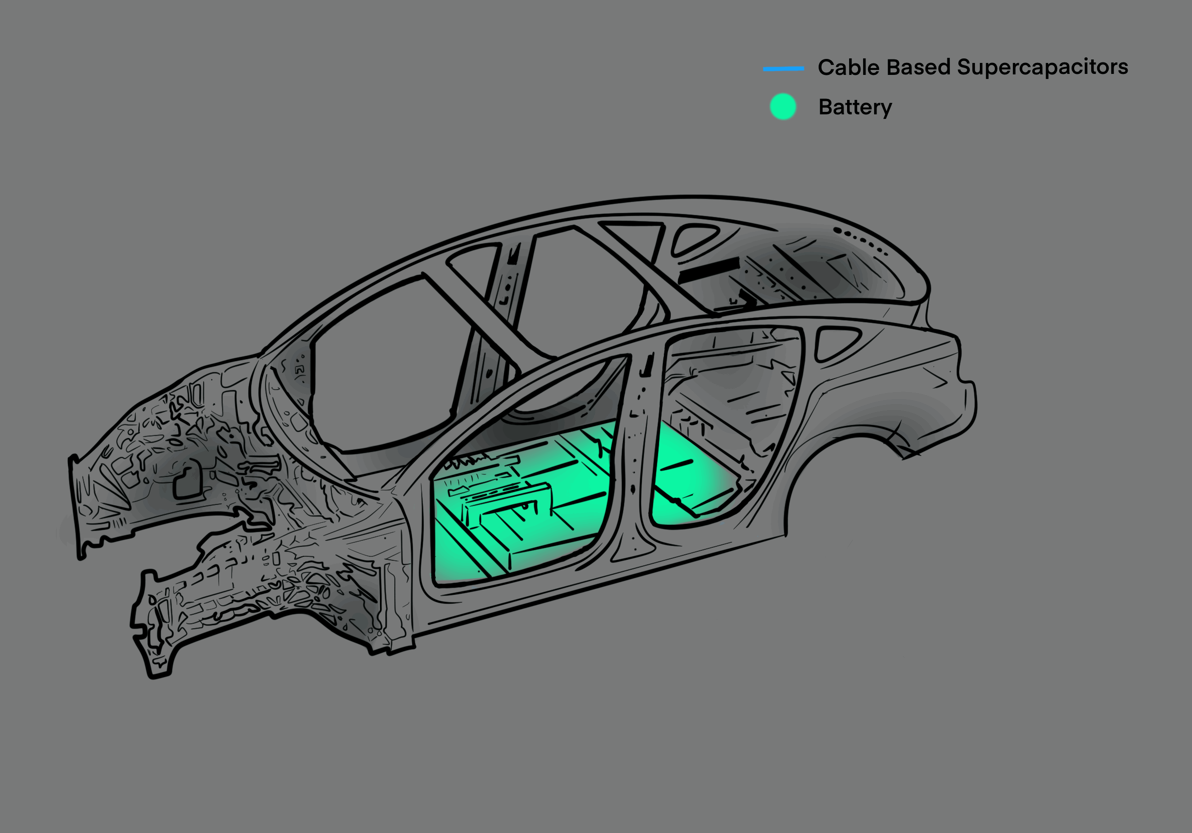 Capacitech provides a high-power storage option that can be integrated into complex geometries such as the parts of the vehicle a traditional battery does not fit into. It’s called the Cable-Based Capacitor, or CBC.