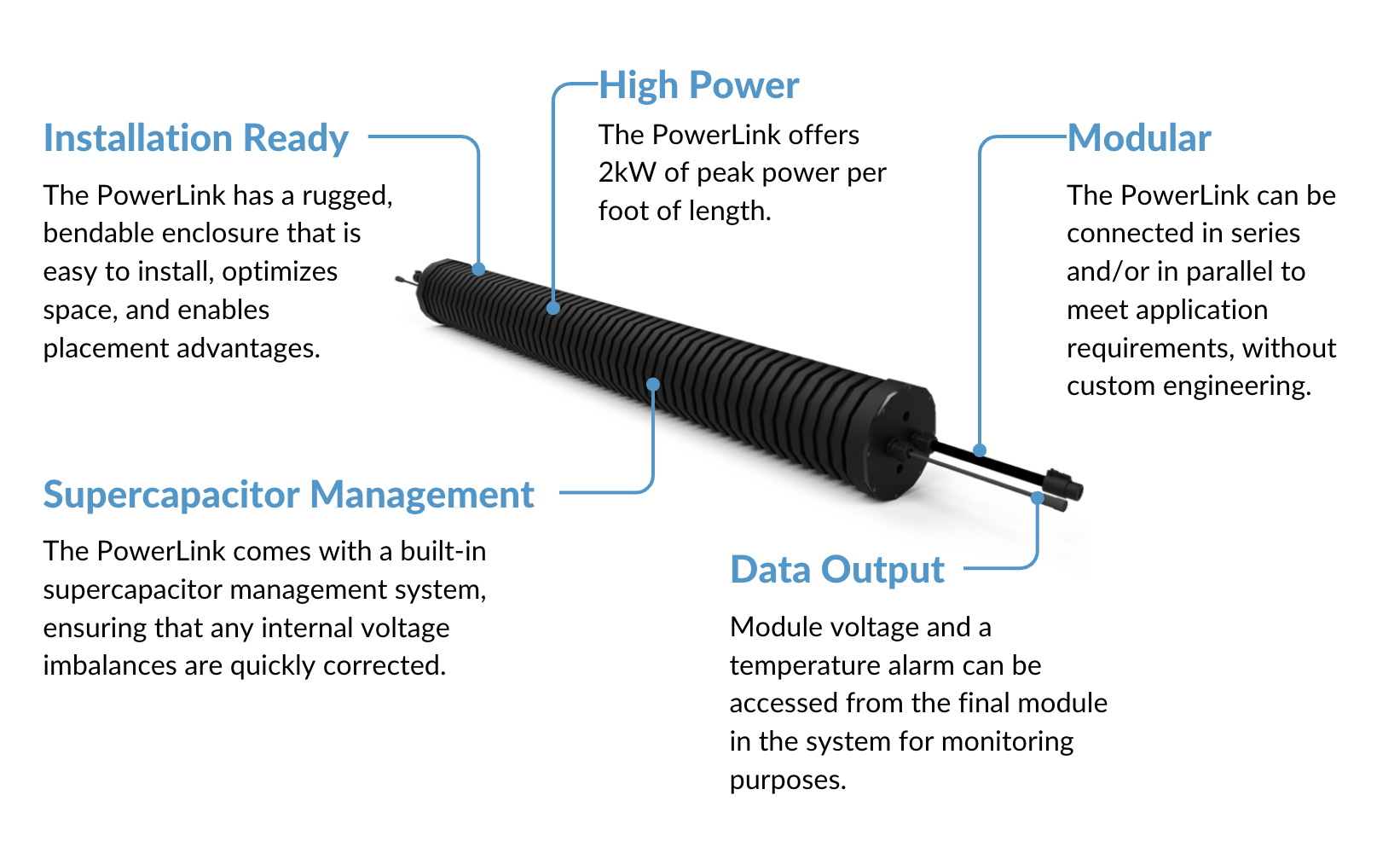 The PowerLink is intended to complement batteries, handle inrush currents, black start, ramp-up, solar smoothing, frequency response, and demand response, among others. Utilizing the PowerLink in these scenarios reduces the stress on traditional energy storage assets, such as batteries, and will reduce degradation and improve efficiency as a result. Applications the PowerLink will thrive in are datacenters, utility grids and microgrids, and locations with critical infrastructure such as shipping ports and hospitals, to name a few.